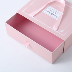 Caja de regalo de joyería tipo cajón de Boutique Rosa personalizada logotipo impreso con revestimiento UV de laminación mate en relieve